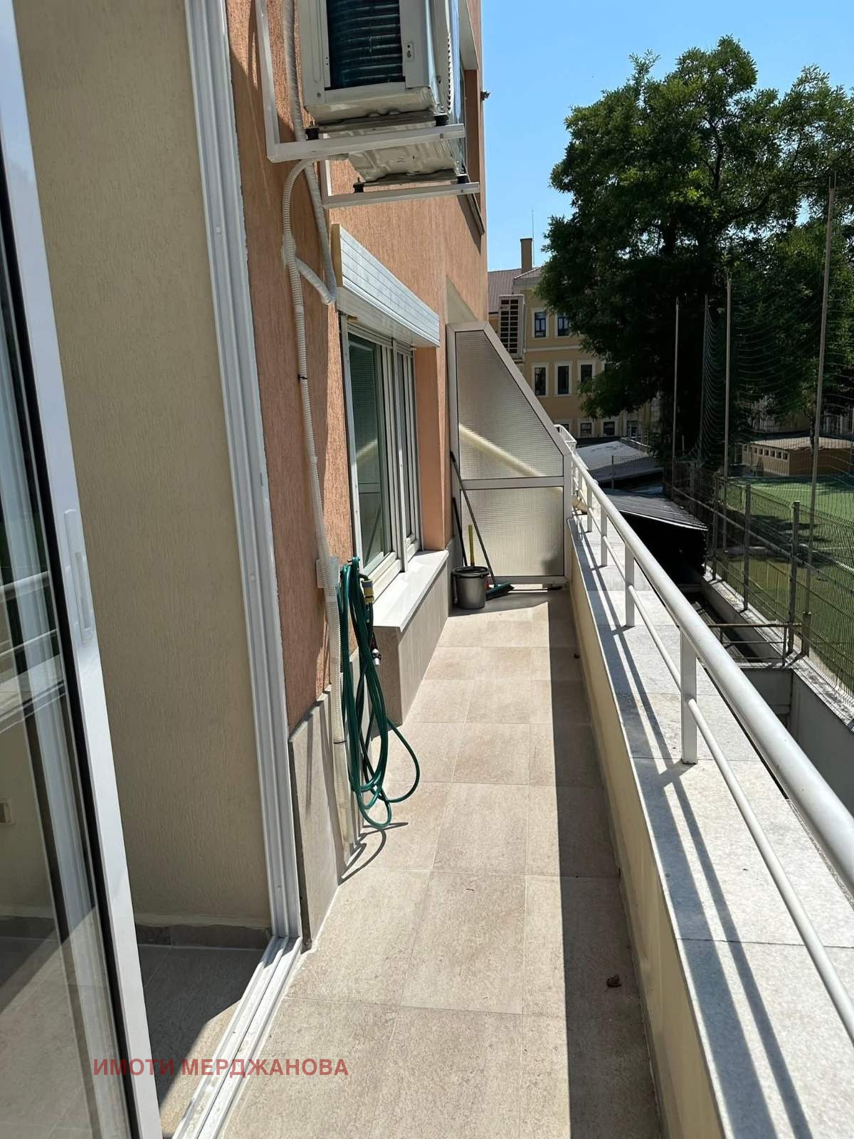 С обща площ от 100 кв.м, чиста 85 кв.м разположен на първи етаж. Апартаментът е изцяло ремонтиран, напълно обзаведен и оборудван, готов за нанасяне. Разполага с две спални, хол с кухненски бокс, баня с тоалетна и тераса, част от която е остъклена.