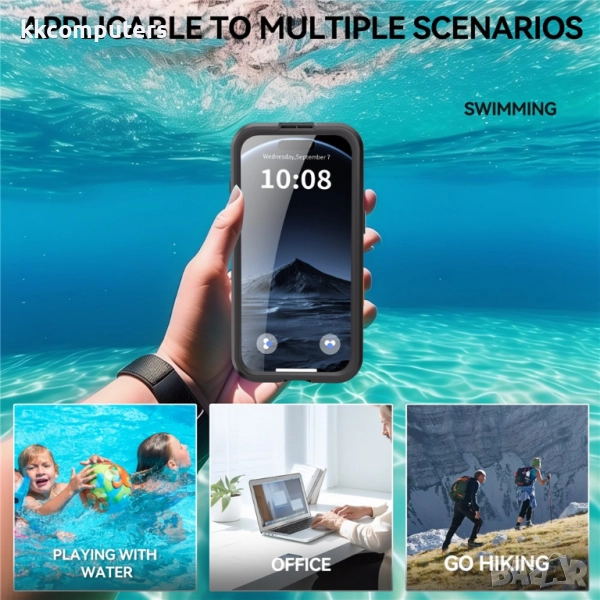С водоустойчив рейтинг IPX8, калъфът поддържа устройството напълно функционално дори при потапяне във вода до 2 метра дълбочина. Освен това IP6X прахоустойчивостта гарантира пълна защита от замърсявания и микрочастици.