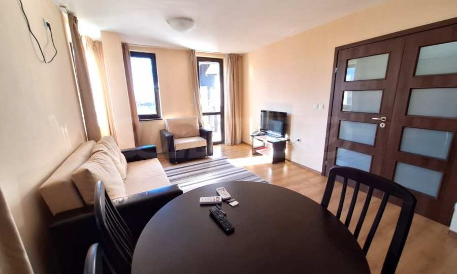 Напълно обзаведен двустаен апартамент в хотелски комплекс, разположен в подножието на Пирин планина, само на няколко минути от кабинковия лифт и ски пистите на Банско.