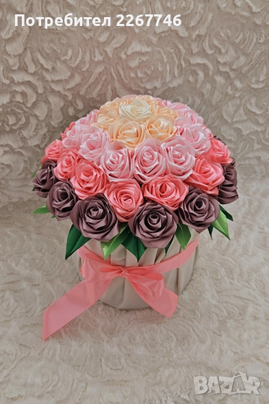 Букет от сатенени рози в кутия, снимка 1 - Изкуствени цветя - 52238086 Букет от сатенени рози в кутия, снимка 2 - Изкуствени цветя - 52238086 Букет от сатенени рози в кутия, снимка 3 - Изкуствени цветя - 52238086 1/3