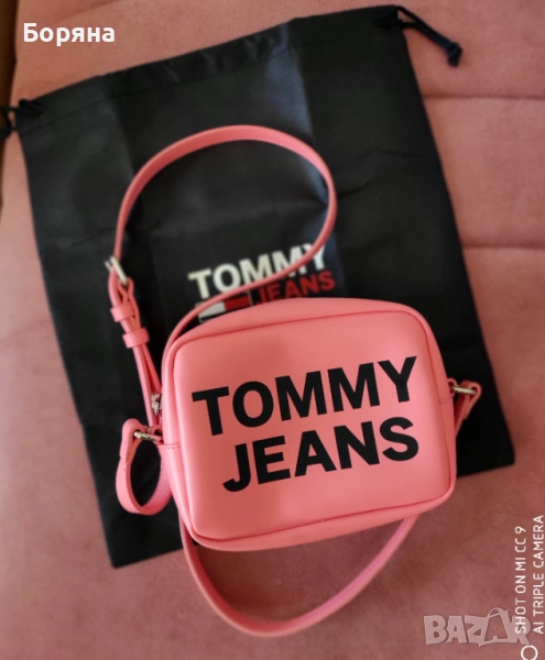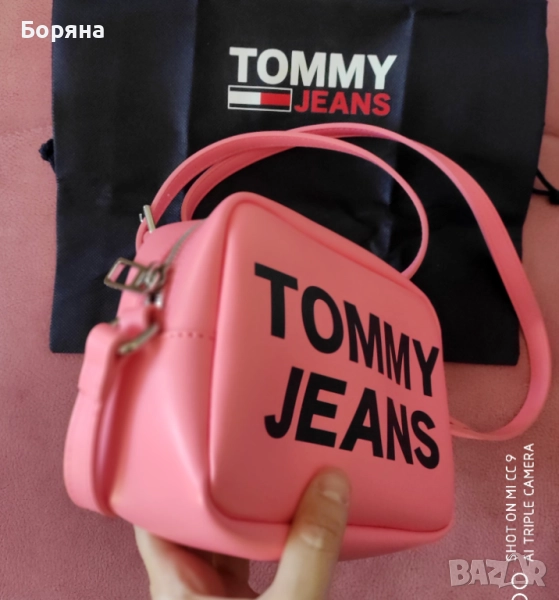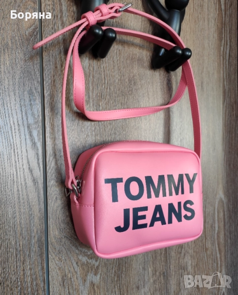 Tommy Jeans - малка розова чанта с дълга дръжка, еко кожа, с торба за съхранение, 1 път слагана - 90 лв.