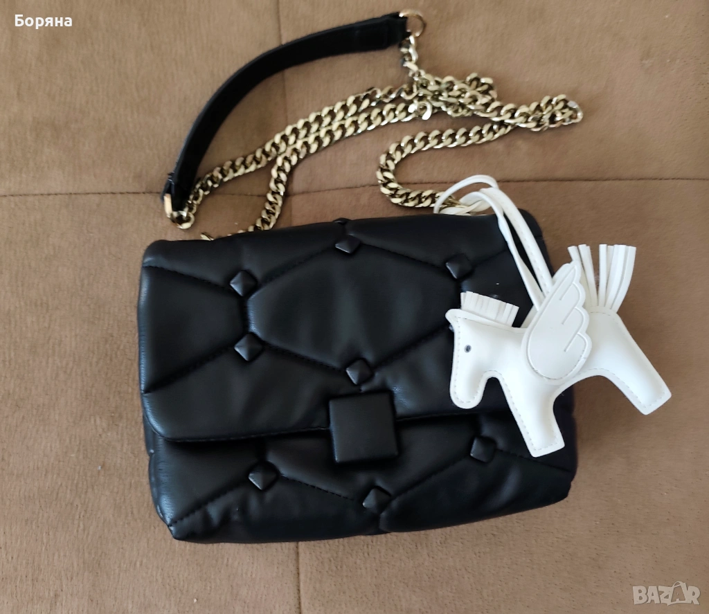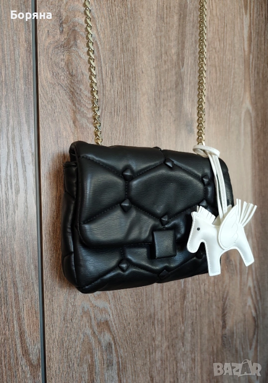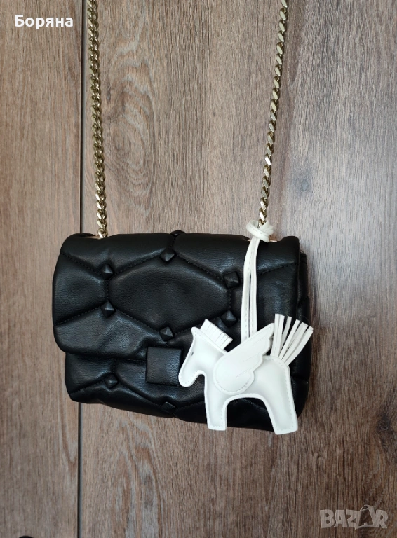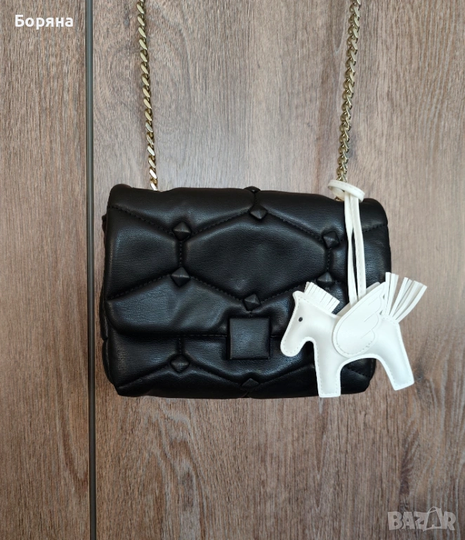 Zara мала кожена черна чанта с висулка кон → Обява 52238234