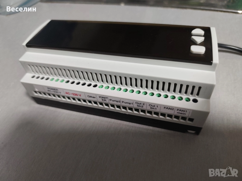 пелетна горелка. Контролера, може да следи 6 воха и да управлява 7 изход. В него са заложени 3 основни режима на работа, 5 защити както и отложен старт и стоп.