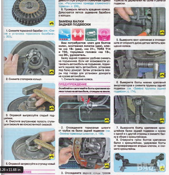 автомобила.Всички операции са демонстрирани със снимков материал и по този начин всеки технически грамотен човек при наличие на нужните инструменти може да се справи с поддръжката на своя автомобил.Посочени са консумативите , регулировъчни данни,списък на необходимите инструменти.Включени са и ел.схеми.