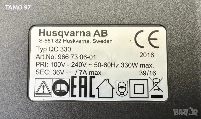 Продавам бързо зарядно устройство Husqvarna / Хускварна за литиево-йонни батерии 36V в отлично визуално състояние и работи без забележки, шведско производство внос от Франция. Пращаме с опция преглед и тест с куриерска фирма еконт може и лично предаване за гр. Шумен. Магазинската цена е: 321лв