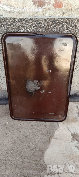 Емайлирана метална подложка за печка на твърдо гориво в добро състояние. При лично предаване се приемат и български лева.