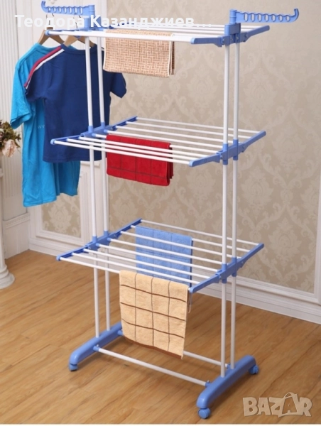 Сгъваем сушилник за дрехи на колелца – практична стойка за сушене на пране → Обява 52240368