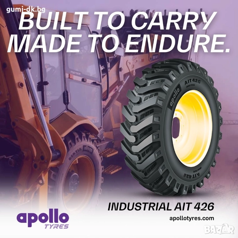 --Apollo AIT 426 12.5/80-18 TL 12PR 142A8 е високоустойчива индустриална гума, създадена за работа със строителна техника като телескопични товарачи, мини товарачи и компактни багери. Моделът разполага със здрав R4-тип протектор, който осигурява отлично сцепление върху твърди настилки, чакъл, уплътнена почва и смесени терени. Специалната конструкция с 12PR гарантира устойчивост на пробиви и сцепление при работа под натоварване, докато безкамерният дизайн TL улеснява сервизирането и поддържа стабилност при ежедневна употреба.