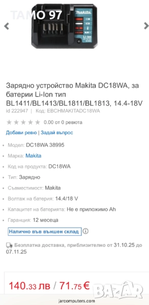 5. Makita DC18WA - за батерии от 14.4V до 18V от G серията на Makita и Maktec - ЦЕНА: 55лв / 28.12евро