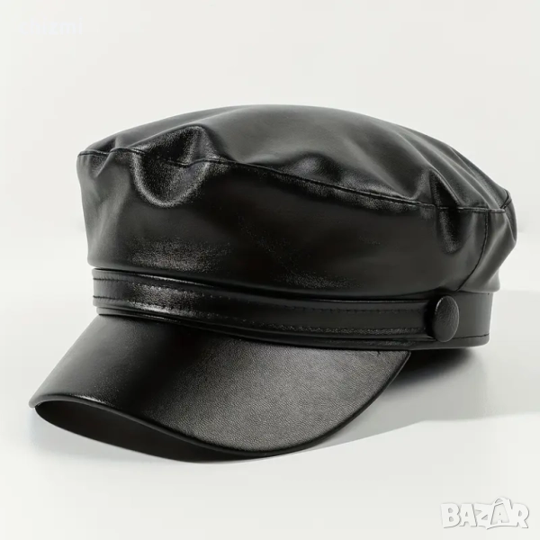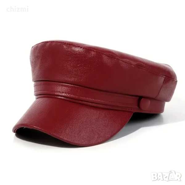 Барета за 4 сезона, шапка от изкуствена кожа с плосък връх, регулируема, британска елегантна дамска шапка