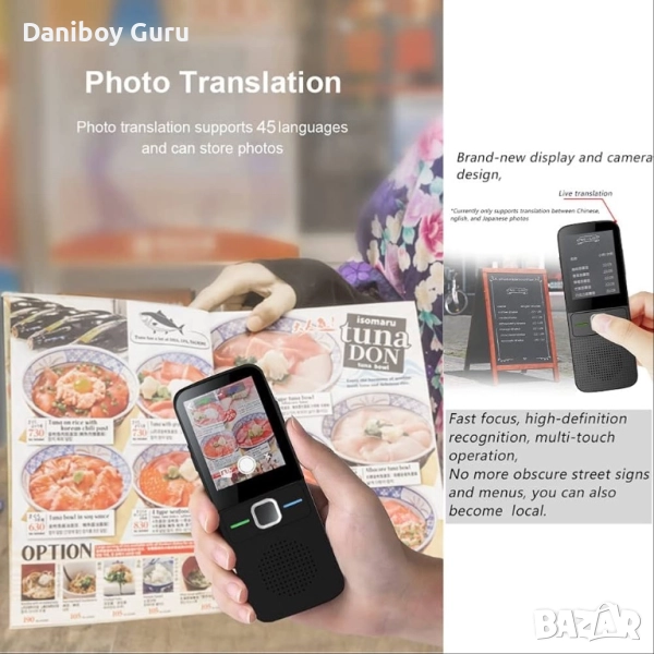 Интелигентен превод на снимки: поддържа превод на снимки на до 45 езика. Моменталният двуезичен преводач ви помага да пътувате в чужбина и да четете менюта, пътни знаци, списания и етикети на различни езици.