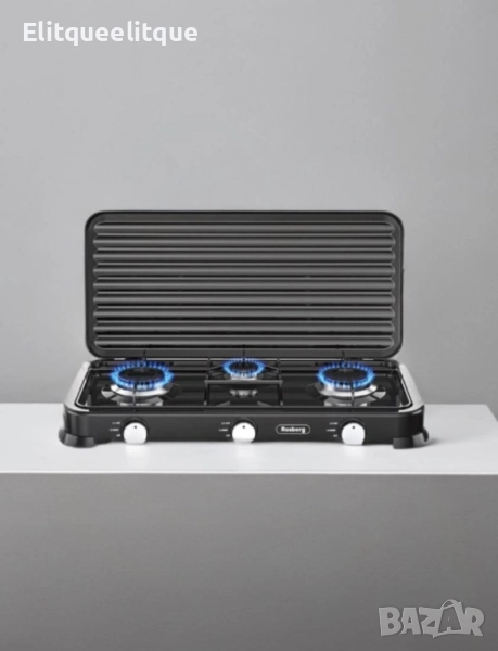 Троен газов котлон газов с капак Rosberg, 30mbar 2x2.2kWh+1x1kWh