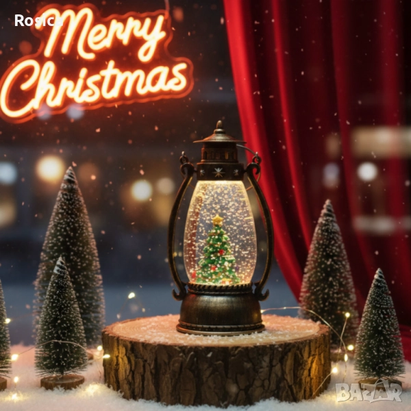 Ретро LED коледен фенер с падащ сняг – магическа светлина и празничен уют → Обява 52242470