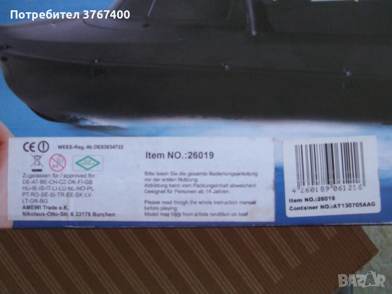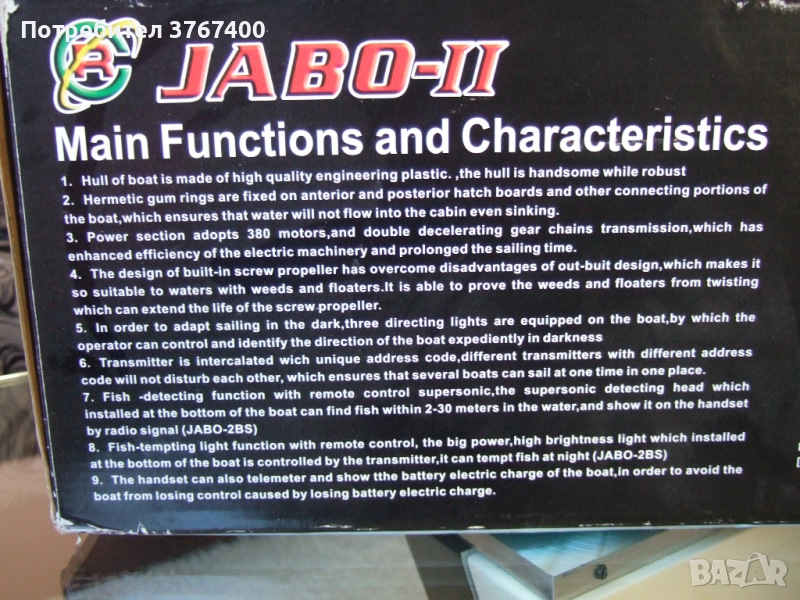 Продавам лодка за захранка JABO 2 , лодката е произведена и копувана от Германия.Сменена батерия / 2024година / с нова 10000mAH ,лодката е тип самосвал, с едно натискане на бутон пуска въдица и захранка и се прибира в начална позиция.Предлагам и подробна инструкция за употреба на английски /намерена в интернет/ Корпусът на лодката е в много добро състояние с минимални драскотини