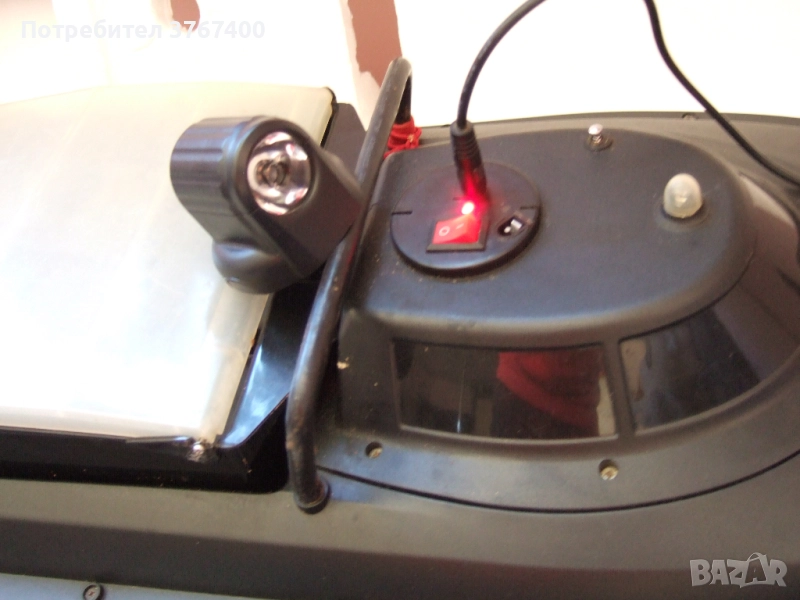 Зарядно за 220 В, лодката е без GPS модул ,но в нета се предлага вграждане на такъв.