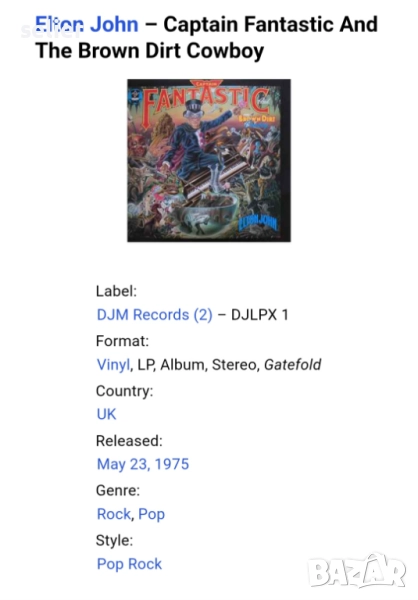 Предлагам на феновете на Елтън Джон много ценна плоча за колекцията им в пълен комплект от плочата+п → Обява 52243290