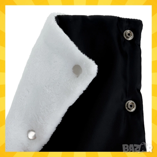 • • Лесно поставяне с копчета – ръкавиците се закрепват бързо и стабилно към дръжката на количката или шейната.