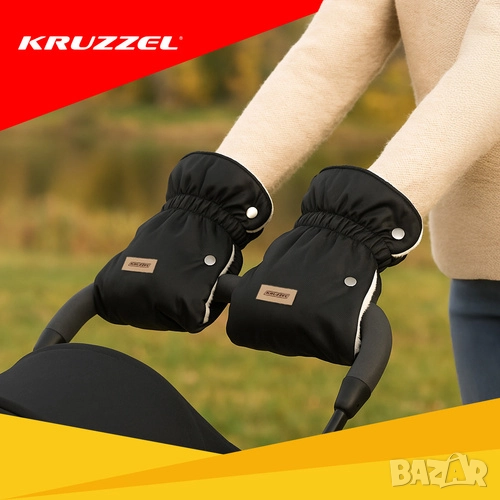 Зимни ръкавици за бебешка количка Kruzzel – комплект от 2 топли и водоустойчиви ръкавици | Черен цвят