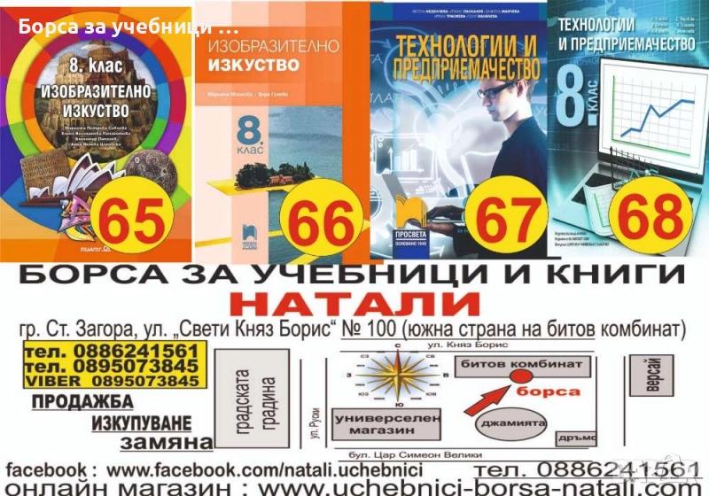 Учебници 8 кл. - Втора употреба 2025/2026г.Борса за учебници Натали