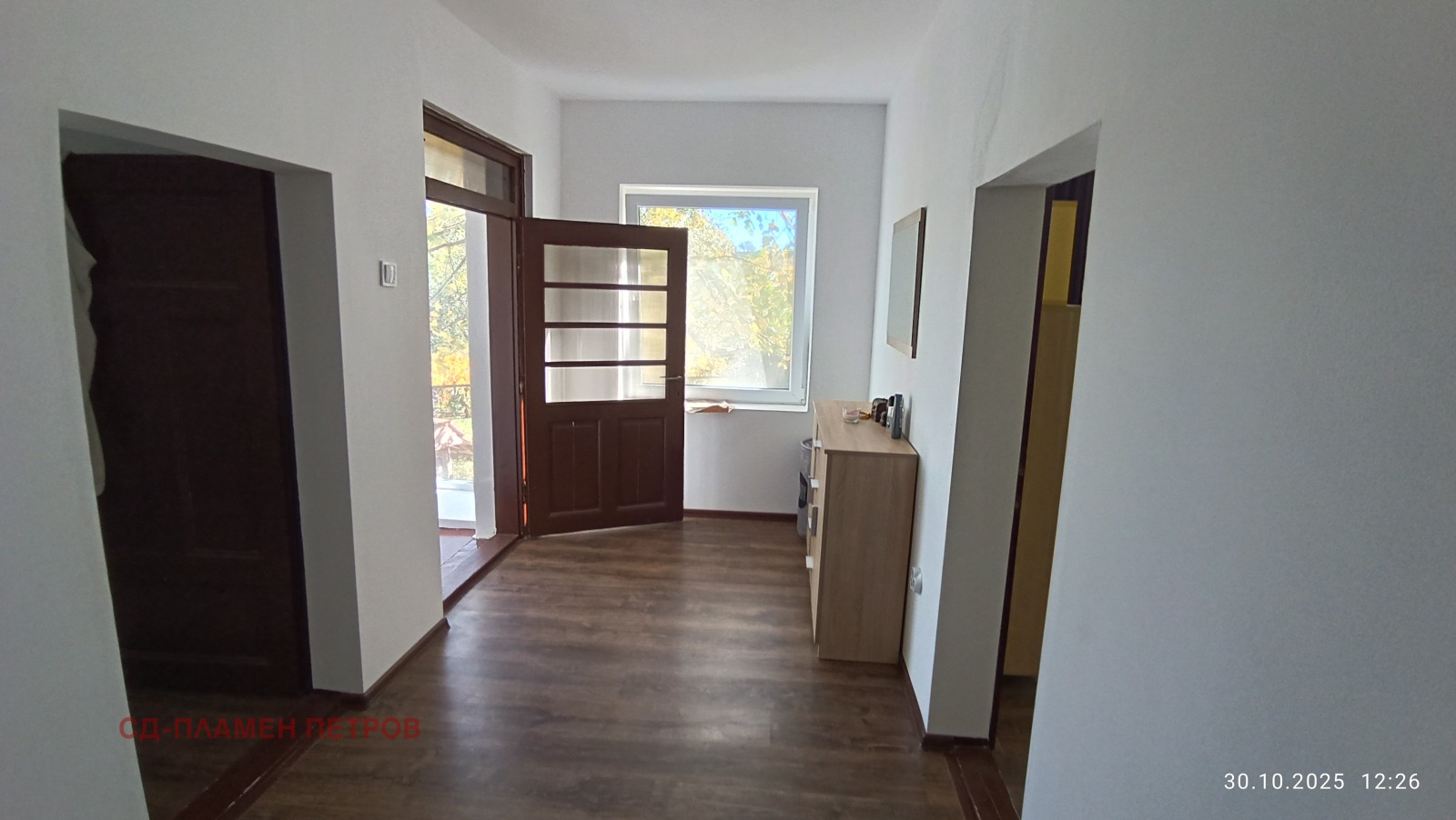 1ет-Просторно антре с оборудвана кухня с климатик и излаз към двора-Входното Антре плавно преминава в уютна кухня,изпълнена със светлина и усещане за простор.Големите френски прозорци отварят гледка към прекрасен,поддържан двор-идеално място за сутрешно кафе или спокойни вечери сред зеленината .Топлите цветове и естествената светлина създават усещане за уют и хармония още с първата стъпка в дома.