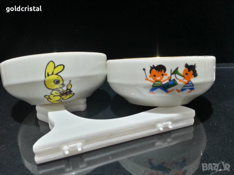 Стар български порцелан Изида купички за супа с детски мотиви детски комплект за хранене две купички без забележки сервиз комплект сет лот ретро арт декор винтидж колекция стари старинни антикварни предмети обзавеждане за дома и семейството подходящи за подарък за ценители и колекционери