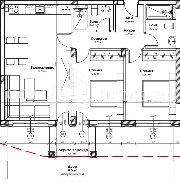 -94кв.м. + веранда и собствен двор - 109 000 евро;