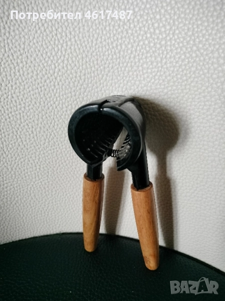 Дървена, много удобна дръжка в комбинация със желязна трошачка. Уникално и много устойчиво. Може да троши и други( лешници) твърди черупки.