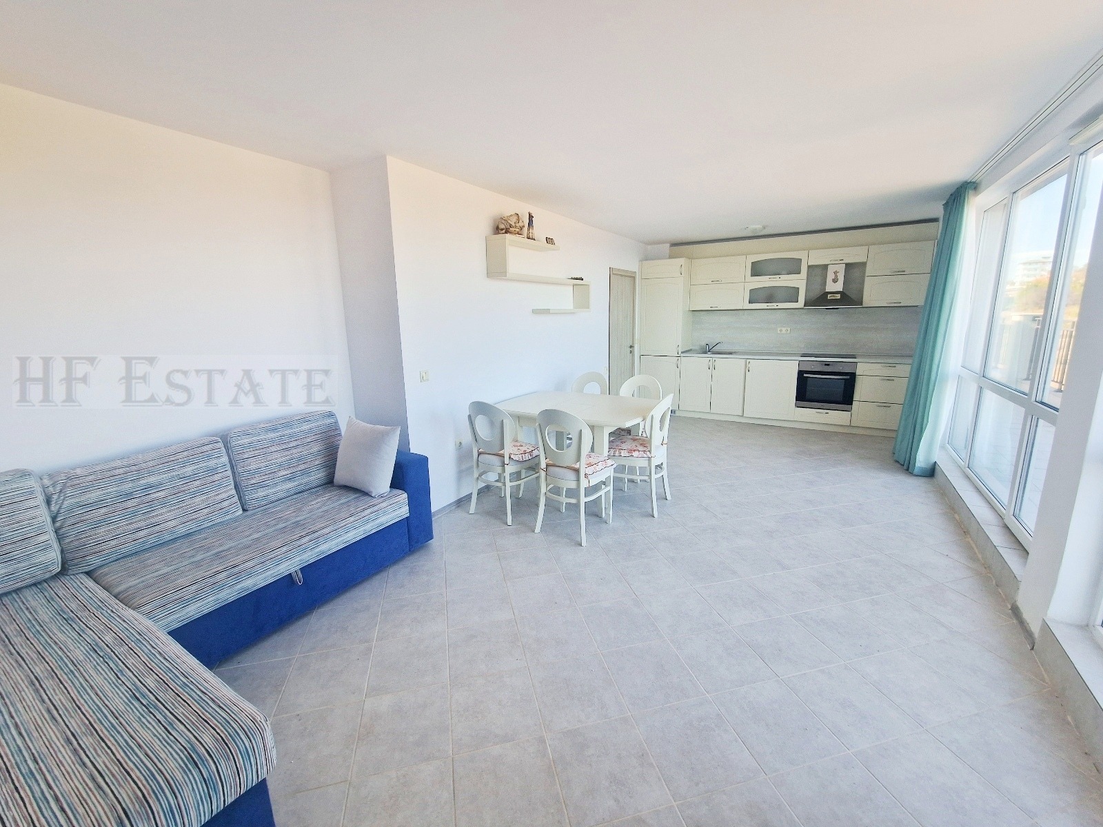 Предлагаме ви стилно обзаведен просторен двустаен апартамент на шести етаж на жилищен комплекс, разположен на 450 метра от пясъчен плаж на тихото крайморско градче Бяла.