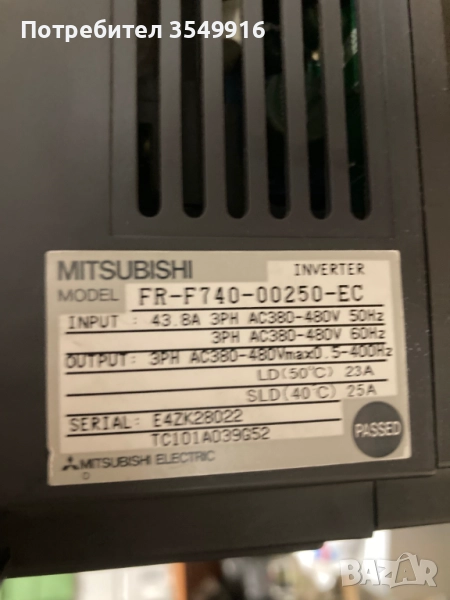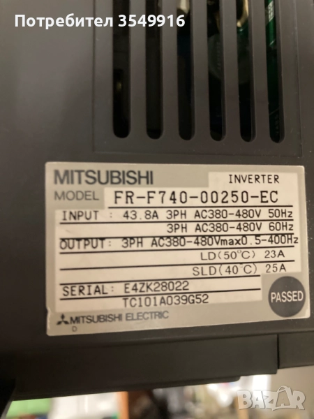 Честорен регулатор 11KW Модел FR-F740-00250-EC Вход 3PH 380/480V 50/60Hz 43.8A Изход 3PH 0-480V 0-400Hz 25А Mного добър външен вид и перфектно работно състояние.