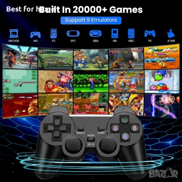 【Вградени над 20 000 класически игри】Конзолата се предлага с над 20 000 вградени игри и 9 предварително инсталирани емулатора, предлагащи богат избор от класически игри, без да е необходимо допълнително изтегляне или интернет връзка. (Поради различните версии, някои игри ще се повтарят, моля, разберете!)