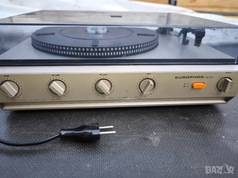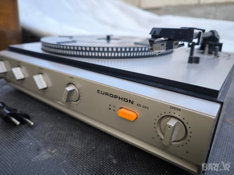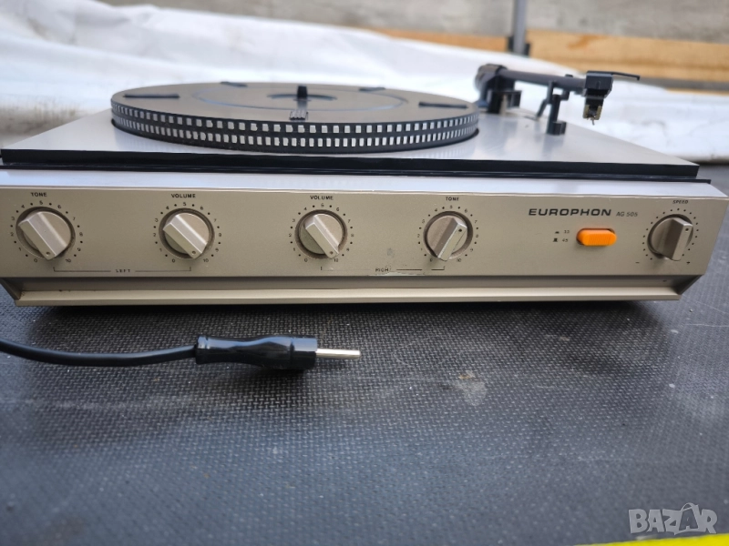 Това е грамофон Europhon AG 505. Europhon е италианска компания за електроника, която е произвеждала грамофони, радиа и телевизори. Моделът Europhon AG 505 е грамофон от 70-те години на миналия век. Грамофонът има две скорости на възпроизвеждане: 33 и 45 оборота в минута. Работещ.