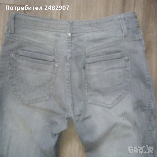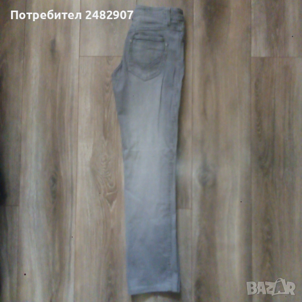 Сиви детски дънки за момиче за възраст 14-15 години (ръст - 164 см). Ширина в талията - 36 см, дължина от талията до чатала - 21 см, дължина от талията до долу - 93 см, ширина на крачола в долната част - 17 см. Много запазени, почти не са използвани, не са еластични.