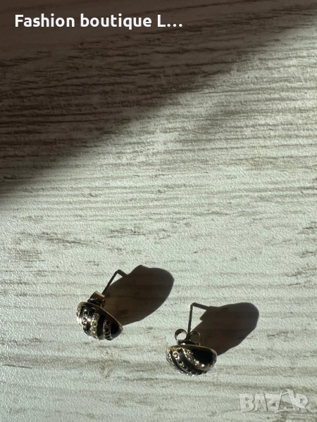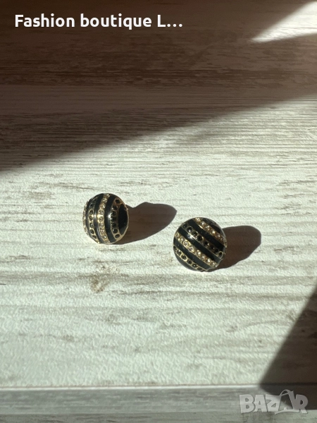 Кръгли обеци с камъчета в златен и черни цвят ❤️ → Обява 52248028