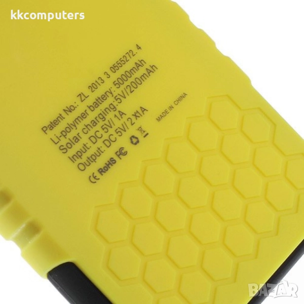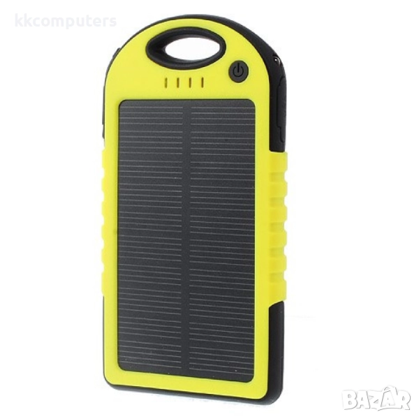 Външна батерия със соларен панел, компактни размери, 5000mAh, водоустойчив и удароустойчив корпус, предназначена да зареди мобилното Ви устройство когато нямате достъп до електрическата мрежа.