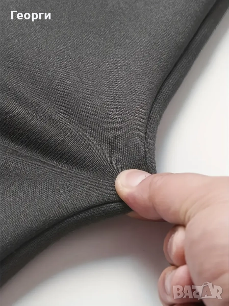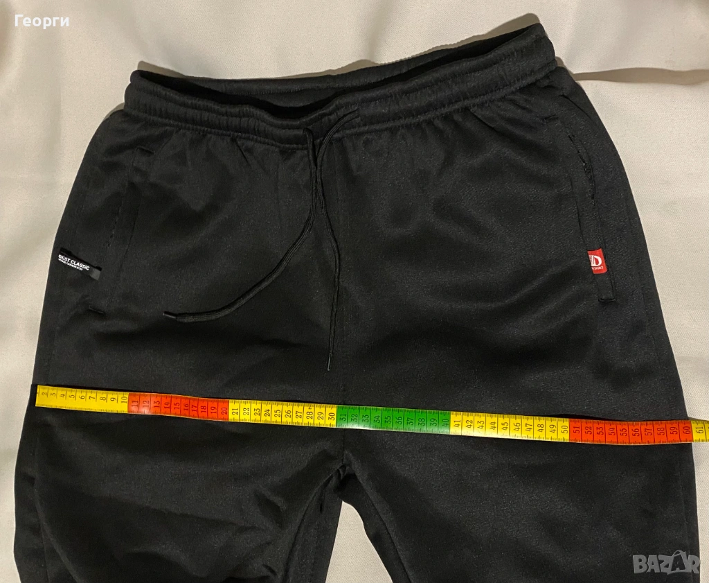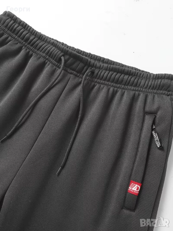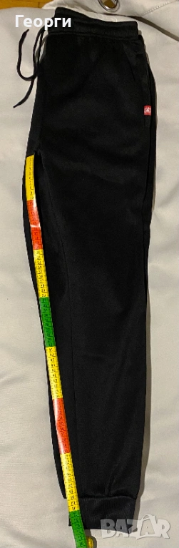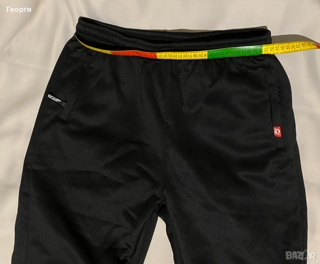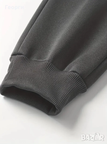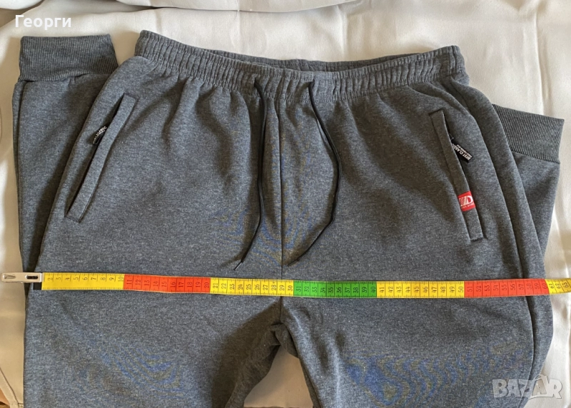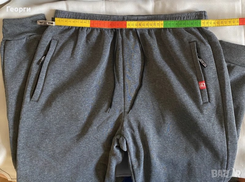 Продавам ново спортно долнище. Плат е полиестър, но е много плътен и топъл, мъхист от вътре, фото 3. Има 2 странични джоба затварящи се с цип.
