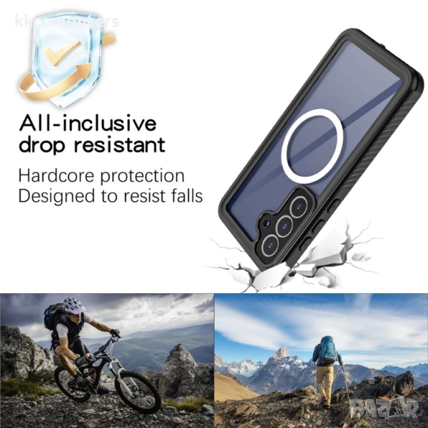 С водоустойчив рейтинг IPX8, калъфът поддържа устройството напълно функционално дори при потапяне във вода до 2 метра дълбочина. Освен това IP6X прахоустойчивостта гарантира пълна защита от замърсявания и микрочастици.