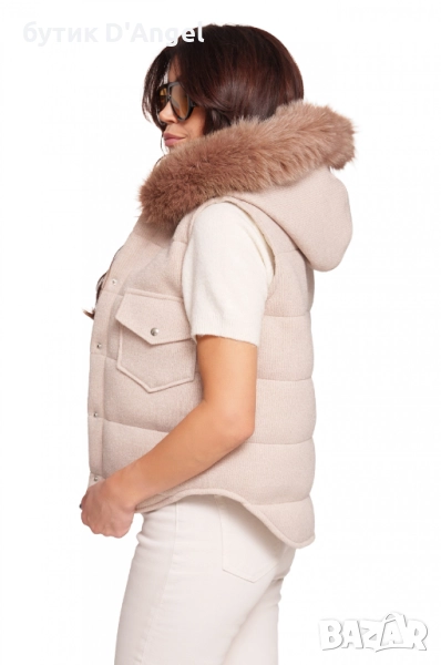 Качулката е подвижна и е завършена с яка от естествен косъм.