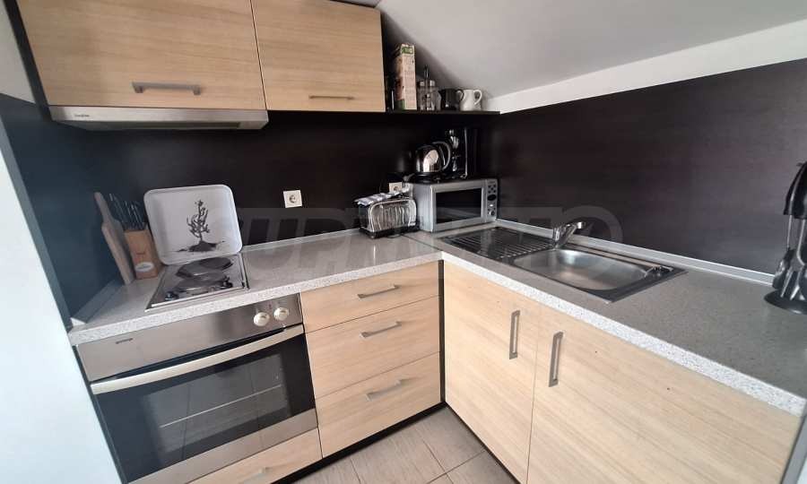 Имотът се състои от: просторна всекидневна с мека мебел, вградена кухня и трапезария, една спалня с двойно легло и напълно оборудвана баня с душ кабина и тоалетна.