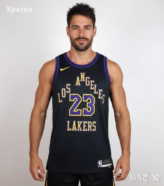 Модел от официалната серия на Nike – NBA Swingman Jersey City Edition 2023/24, посветен на LeBron James и историята на Los Angeles Lakers.