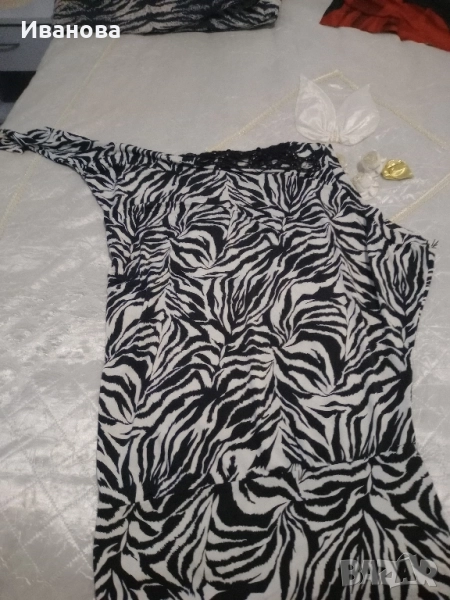 4. Рокля в бяло и черно с един ръкав С/М размер един път обличана цена 20лв