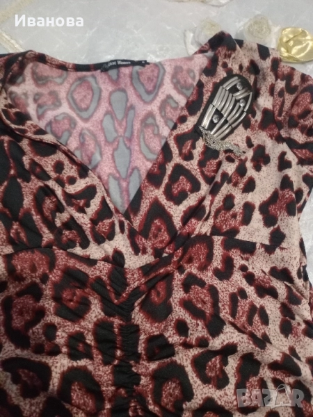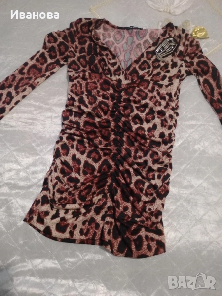 5.Тигрова рокля с рязан ръкав нова С размер под коляното цена 40лв
