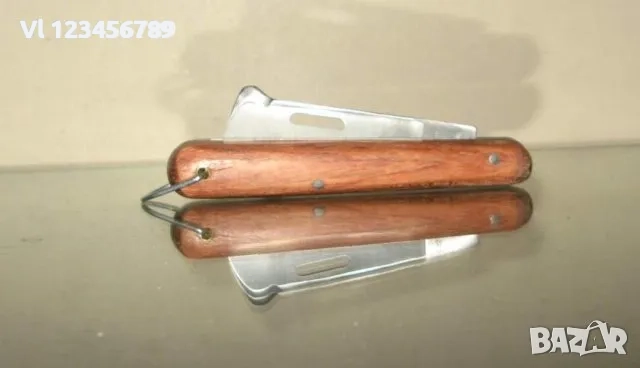 1. - Класическо ножче за ашладисване. Обща дължина в разгънато положение 175 мм. острие 70 сгънат 105 мм; Ръкохватка - великолепна дървена ръкохватка от твърда дървесина. Надпис -Bulgaria, Steinless Steel Ухо за закачане с шнур; -10 лв