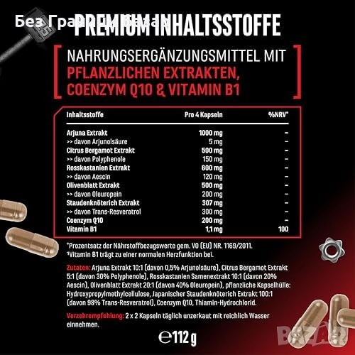 Високодозова формула: Arjuna, Citrus Bergamot, Конски кестен, Маслинов лист, Ресвератрол