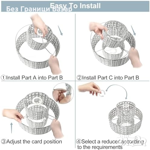 Пасва на B22, E14, E27 фасунги благодарение на включения преходен ринг