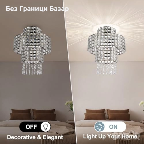 Нов Луксозен абажур с кристален ефект за спалня, хол и коридор 32×38 см