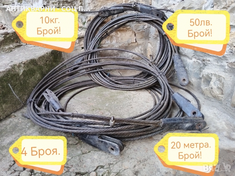 Здравейте - Продавам Стари Соц Телени Въжета / 4 Броя / 20 Метра Брой / 10 кг. Брой / 10мм. / 50 лв. Брой!