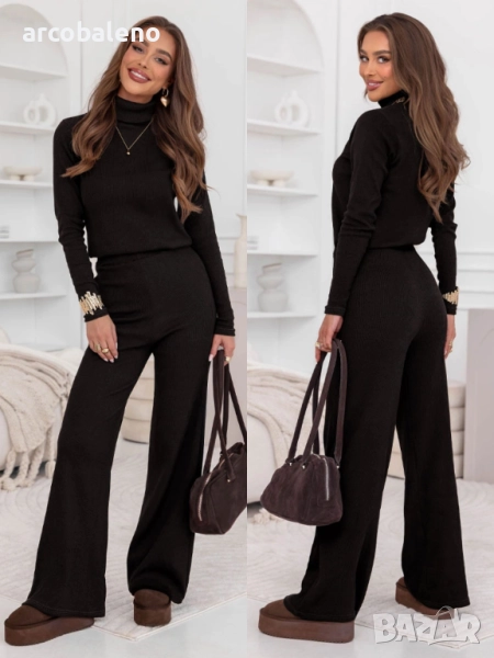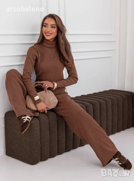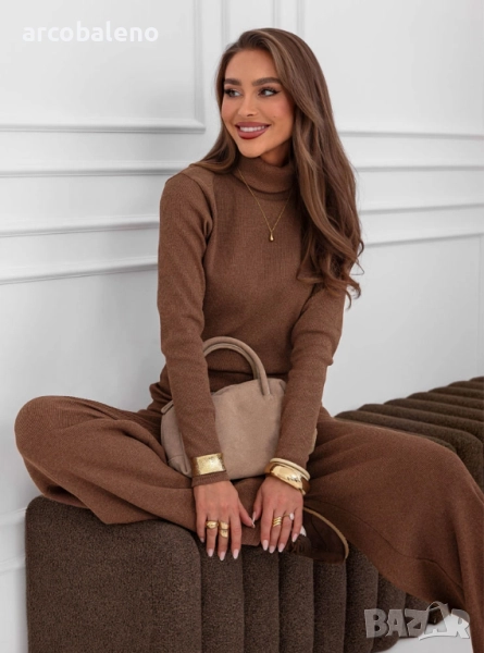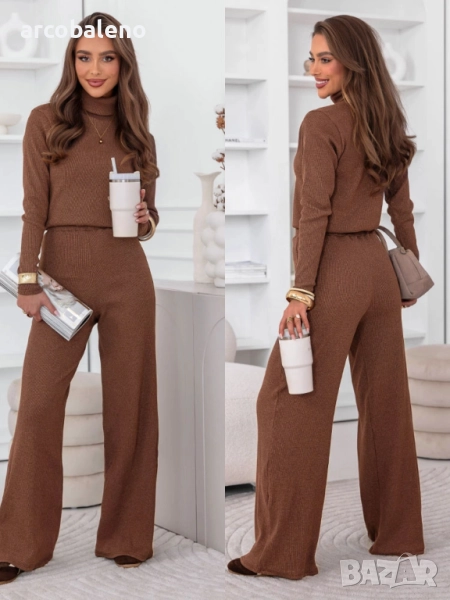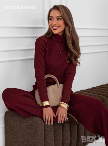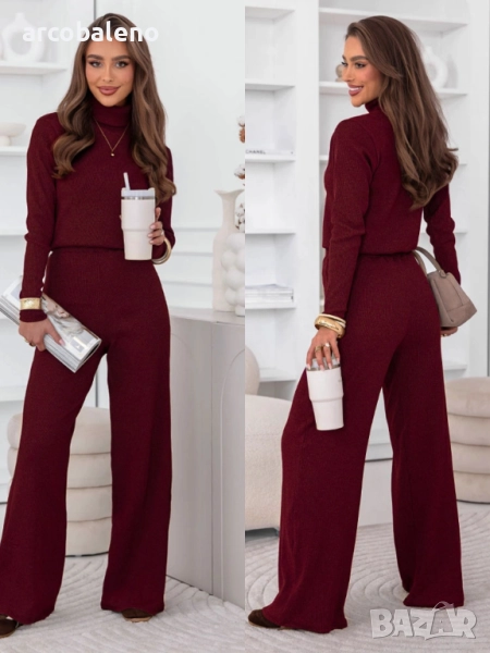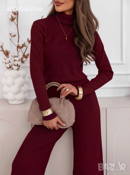 Комплектът от поло блуза и широк панталон Kimbree е комбинация от стил, комфорт и класа. Наситеният му цвят и вталената кройка подчертават женствената елегантност. Меката плетена материя осигурява комфорт през целия ден, а широките панталони добавят нотка лекота и непринуденост. Това е перфектният избор за по-хладните дни, като винаги ще изглеждате модерни. Този комплект се съчетава прекрасно с палта, якета и елегантни аксесоари. Независимо от повода, той винаги изглежда страхотно. Стилен, удобен и вечен, той е задължителен елемент в гардероба на всяка жена.