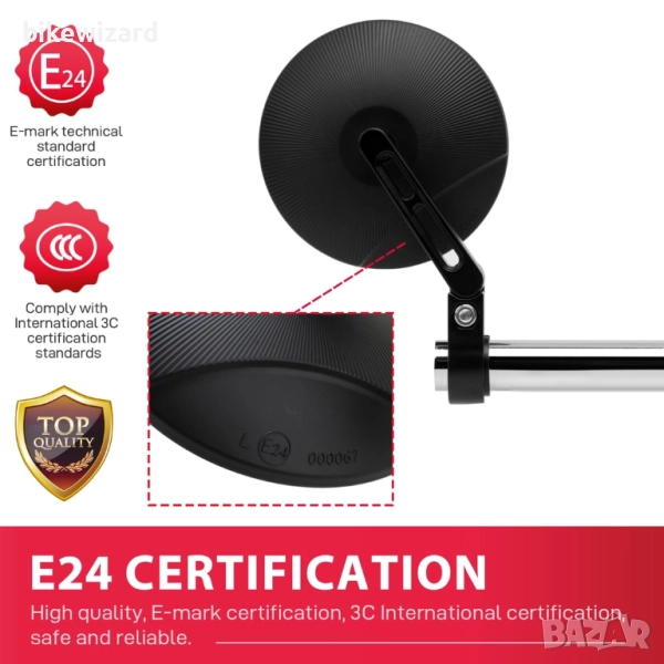 Огледало за кормило DREAMIZER, странично огледало за кормило на мотоциклет E24, въртящо се на 360° кръгло огледало за мотоциклет за кормило 22-25.4 мм, огледало за обратно виждане за мотоциклет, съвместимо с кросови мотоциклети Euduro E-Bike ATV