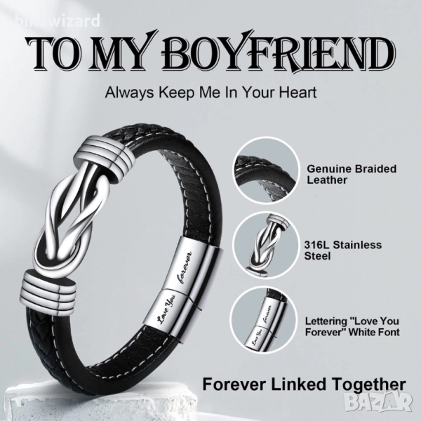 VU100 Мъжка плетена кожена гривна, неръждаема стомана, винаги те обичам, плетена кожена гривна с възел