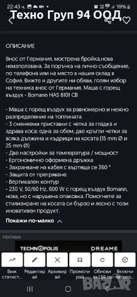 Електрическа четка/маша за къдрене с горещ въздух → Обява 52251080